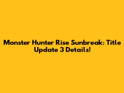 Monster Hunter Rise Sunbreak: Title Update 3 Details!
