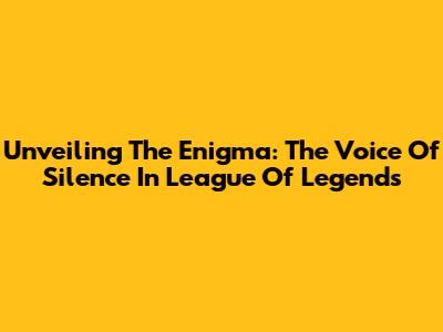 Unveiling The Enigma: The Voice Of Silence In League Of Legends