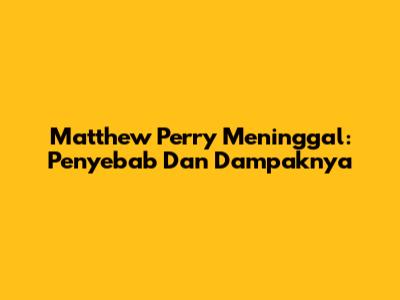 Matthew Perry Meninggal: Penyebab Dan Dampaknya