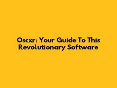 Oscxr: Your Guide To This Revolutionary Software